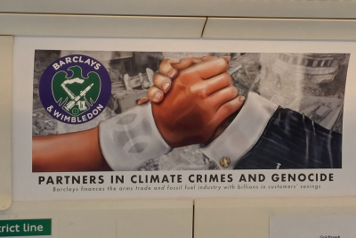 Grupa protestanata, njih oko 100, okupilo se prvog dana ispred glavnog ulaza u "Ol Ingland klub" kako bi izrazili svoje nezadovoljstvo izborom sponzora trećeg Grend slema u sezoni, svakako najprestižnijeg.