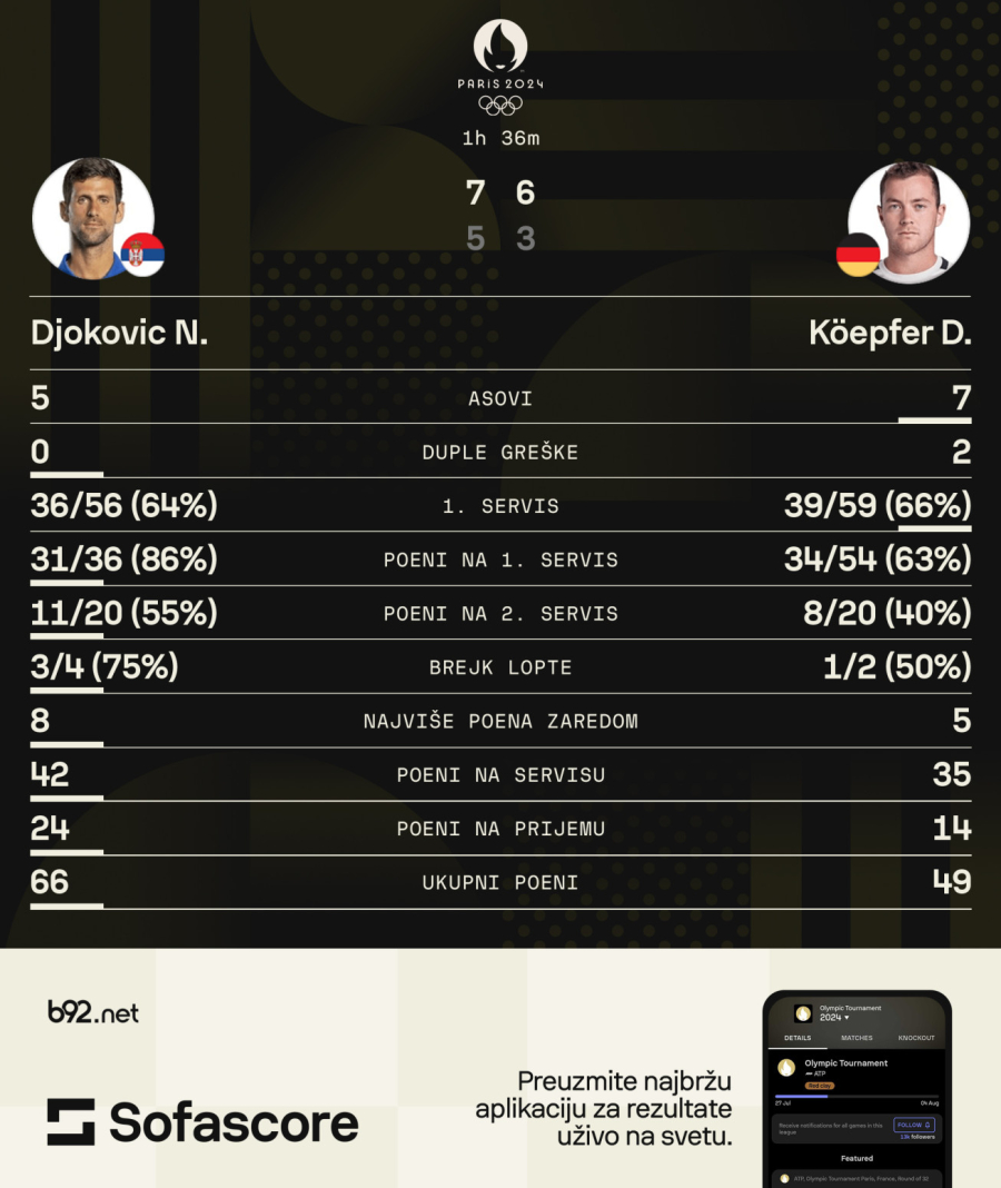 Sve detalje sa susreta Đokovića i Kepfera možete da pratite uz LIVE BLOG B92. sport.
