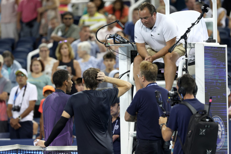 "Zar nisi video da je loptica prvo dotakla teren? Reketom si udario u teren? Šta misliš time da kažeš?", pitao je Feliks protivnika pre nego što je krenuo na sudiju u stolici Grega Alensvorta.