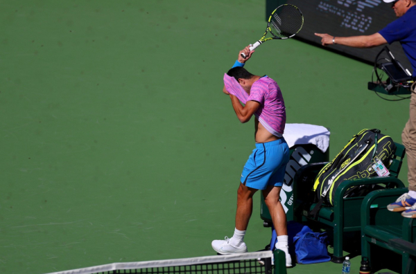 Nakon što je stručnjak uklonio većinu pčela sa stadiona, teniseri su se vratili na teren, ali je Alkaras oklevao da počne zagrevanje za nastavak meča.