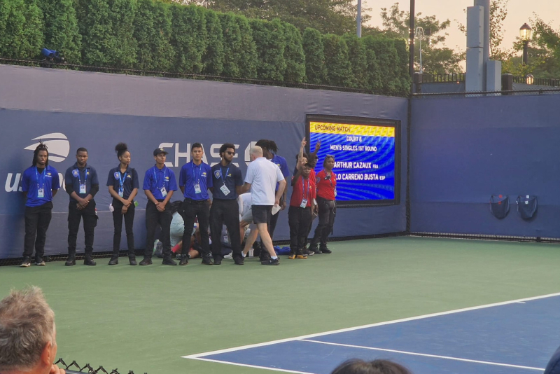 Teren broj osam, baš kao i ostali manji tereni na kompleksu u "Flašing Medouzu" nemaju krov, tako da su pretežno iz tog razloga tribine bile poluprazne.
