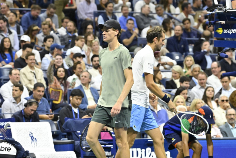 Od samog početka bilo je jasno kakav ćemo susret gledati – ofanzivnog Sinera i defanzivno orijentisanog Medvedeva, koji servise čeka daleko od osnovne linije.