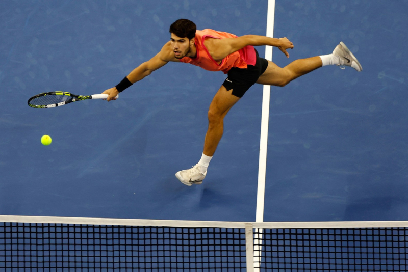 Posle sat i 15 minuta po setovima je bilo 6:2, 6:2 za Alkarasa, koji je tako na najbolji mogući način startovao na ovom turniru iz serij 1.000 nakon što je prethodno tirjumfovao u Pekingu.