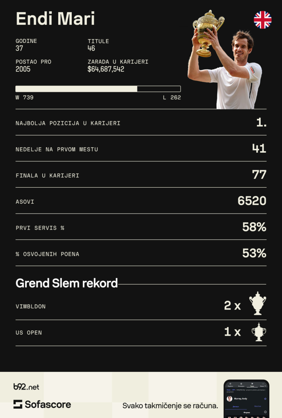 Endi Mari, trostruki Grend slem šampion, izrazio je zadovoljstvo što će se uskoro naći u novoj ulozu – trenera najboljeg tenisera svih vremena.