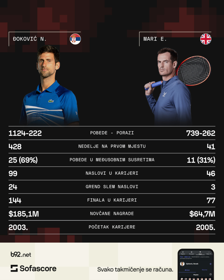 Mari i Đoković su se tokom karijere sastali 36 puta, od čega je Novak slavio u 25 navrata.