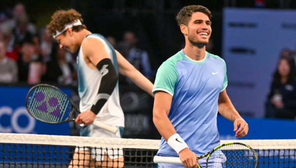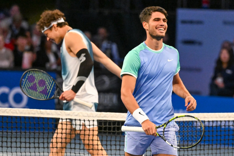 Tokom susreta bilo je dosta urnebesnih trenutaka – Alkaras se žalio da mu je teško da vrati servis rivalu, dok mu je nakon jednog poena prišao i "tukao" ga.