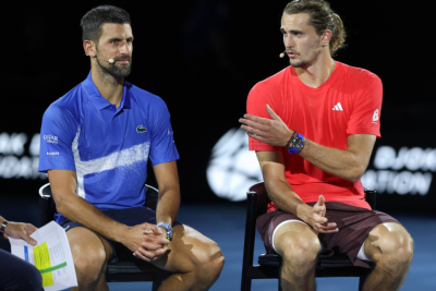 Posle toga je Zverev upitan da prokometariše Novakovog novog trenera Endija Marija. Na to je Nemac rekao samo jednu reč, „Sr..e“, što je nasmejalo Đokovića.