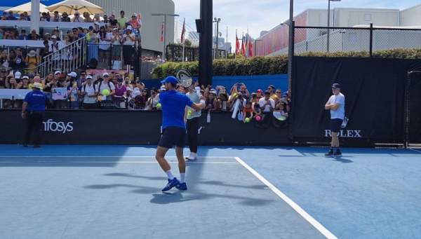 Novak se pojavio sa svojim timom, predvođenim trenerom Endijem Marijem, a okupljeni navijači su sa oduševljenjem dočekali desetostrukog šampiona.