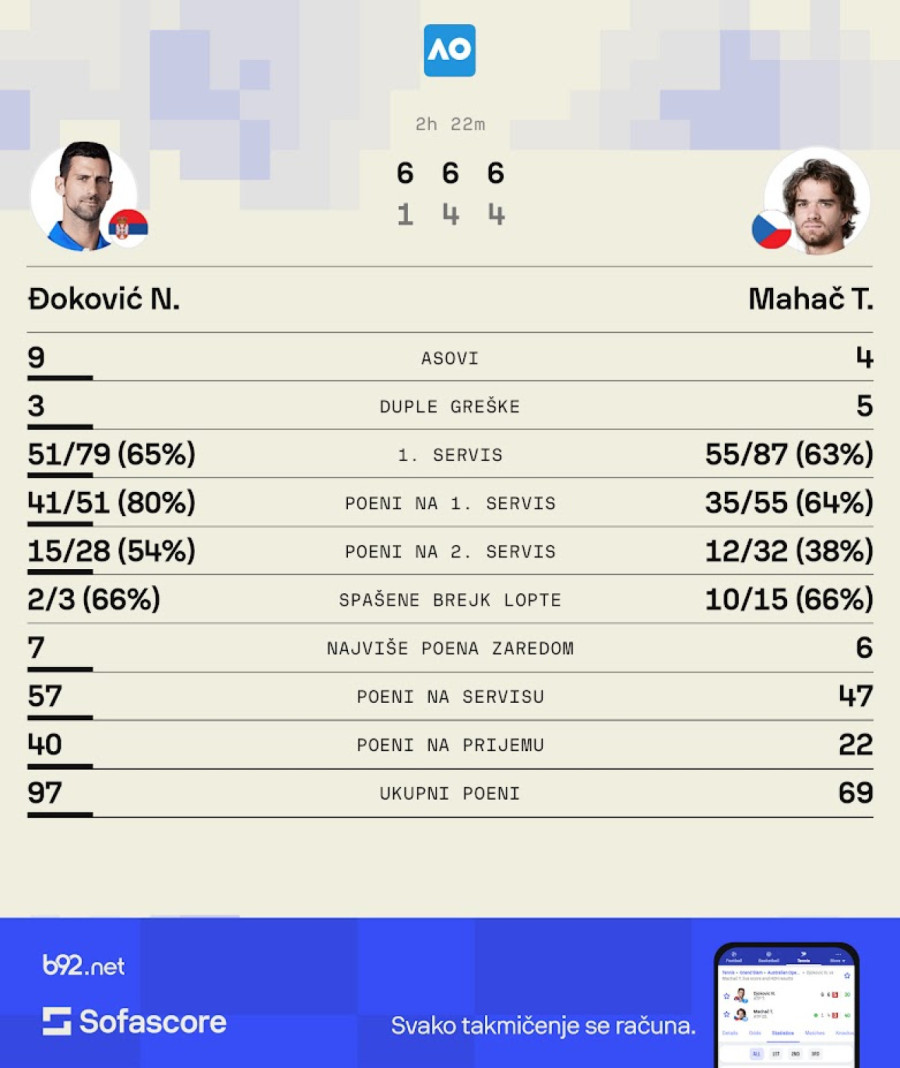 On je posle tri seta bio bolji od Tomaša Mahača - 6:1, 6:4, 6:4 i zakazao duel sa još jednim Čehom Jiržijem Lehečkom.