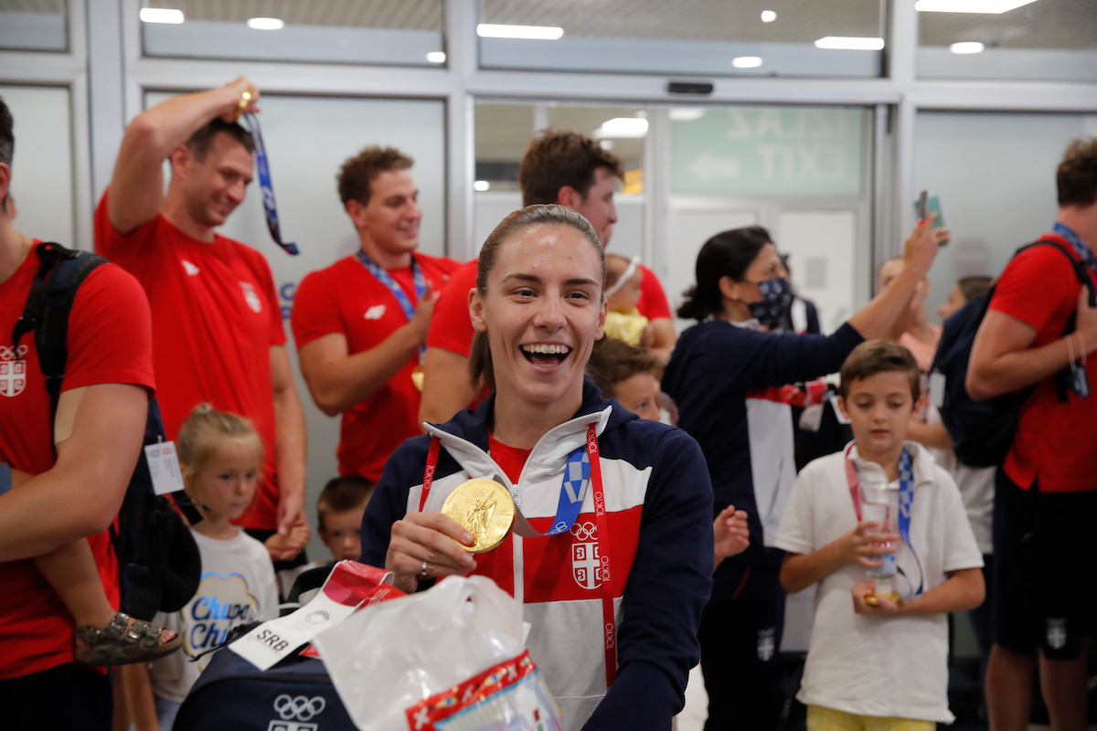 Osvajači zlatnih medalja na Olimpijskim igrama u Tokiju, vaterpolisti Srbije i karatiskinja Jovana Preković, te bronzane odbojkašice, doputovali su u Beograd.