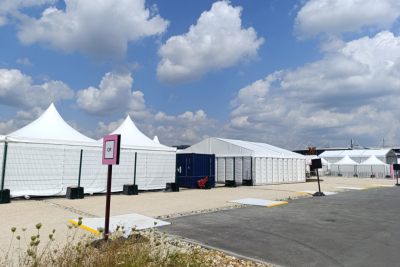 Nova tura pešaćenja po zemljanim stazama po kojima se može uočiti da ima pomalo rizle (tucani kamen) vodila je do bezbednoste kontrole, okruživali su nas beli šatori i kutije, a putokazi s strane pokazivali su ulazu u bazen.