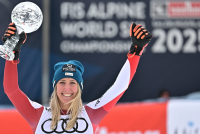 Austrijska skijašica Kornelija Hiter osvojila je titulu u spustu, pošto je u trci na finalu Svetskog kupa u Zalbahu osvojila prvo mesto.