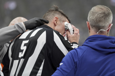 Sudija Kris Runi, koji se smatra jednim od najboljih NHL arbitara, krvav je napustio sedmu utakmicu plej-of serije između Floride i Toronta, nakon što je nenamerno dobio udarac palicom iznad oka.