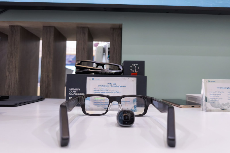 Štand China Mobile operatera svake godine je prepun novotarija, a ovog puta najviše pažnje privukle su mi upravo INMO GO2 naočare koje kao da su došle iz 22. veka.
