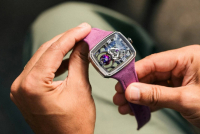 Dizajn kućišta je pametno osmišljen – veći deo zapremine je raspoređen horizontalno, što ga čini udobnim za nošenje, piše portal A Blog To Watch. Pošto nema tradicionalnu ušicu, ljubičasti kaiš od brušene kože je direktno povezan sa kućištem. Odsjaj je minimiziran zahvaljujući visokokvalitetnom antirefleksnom premazu.