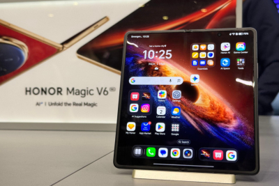 Još jedan uređaj koji je predstavljen, već je uveliko najavljivan – HONOR Magic V6. U pitanju je najtanji i istovremeno najizdržljiviji sklopivi telefon na svetu. Uprkos debljini od samo 8.75 mm u sklopljenom stanju, ovaj telefon donosi bateriju od 6660 mAh, napravljenu na bazi silikonskog ugljenika. U pitanju je najtanja baterija na ovom principu, koja donosi veću gustinu skladištenja energije. To je danas baterija sa najvećim kapacitetom među preklopnim telefonima. Magic V6 pokreće trenutno najbrži čipset (Snapdragon 8 Elite Gen 5), a poseduje spoljni ekran dijagonale 6.52" i preklopni ekran dijagonale 7.95", oba u AMOLED izdanju. Spoljni ekran ima osvetljenje o čak 6000 nita, dok unutrašnji ekran takođe briljira, sa 5000 nita. Telefon je opremljen i sa vrhunskim sistemom kamera. Glavna kamera ima rezoluciju od 50 MP, dok periskopska telefoto kamera donosi rezoluciju od 64 MP. Pored njih, na raspolaganju su 20 MP selfi kamere, na spoljnom i unutrašnjem ekranu.