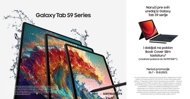 Naruči pre svih uređaj iz Galaxy Tab S9 serije i očekuje te poseban poklon. Uživaj u poklonu vrednosti do 26.999 RSD, a promocija traje od 26.7. do 10.8. Saznaj više na sledećem linku https://www.samsung.com/rs/offer/preorder-galaxy-tab-s9/ .