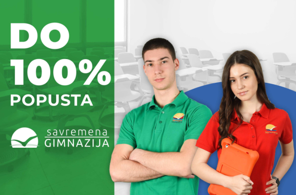 Ako je vaše dete tokom osnovne škole pokazalo da mu sjajno idu brojevi, jezičke figure, umetničko izražavanje ili neki sport, onda je sada prava prilika da mu obezbedite kvalitetno obrazovanje u prestižnoj gimnaziji, uz popust od 10 do 100 posto. Saznajte sve o pogodnostima za najbolje male maturante u Savremenoj.