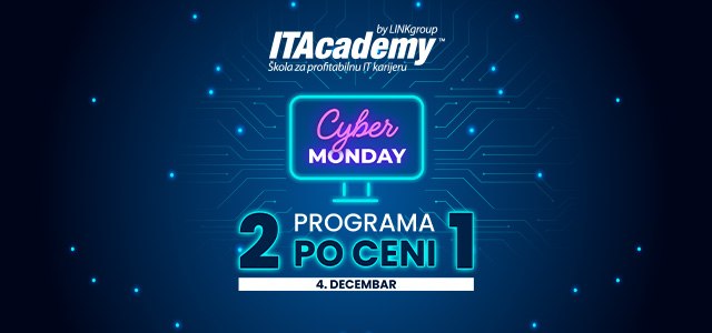 Ovaj Cyber ponedeljak ITAcademy organizuje specijalno za one koji su spremni da uplove u IT svet i započnu profitabilnu karijeru. Zato ne čekajte i iskoristite ovu akciju da započnete sa sticanjem znanja i veština koji će od vas načiniti svestranog i traženog IT stručnjaka.