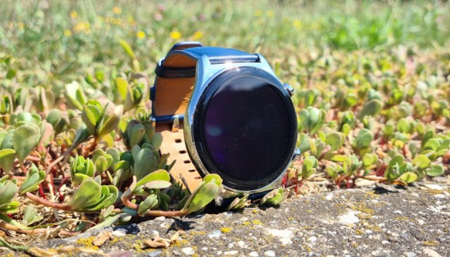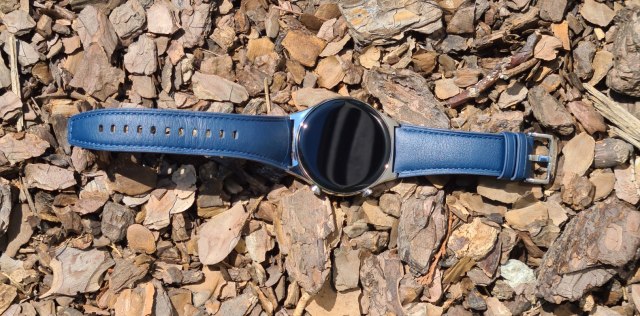Sat stiže sa kućištem veličine 46 milimetara (45,9 da budemo precizniji), sa dizajnom u srebrnoj boji, koji omogućava da plavi kožni kaiš dođe do izražaja. Dva tastera sa strane takođe su srebrni.
