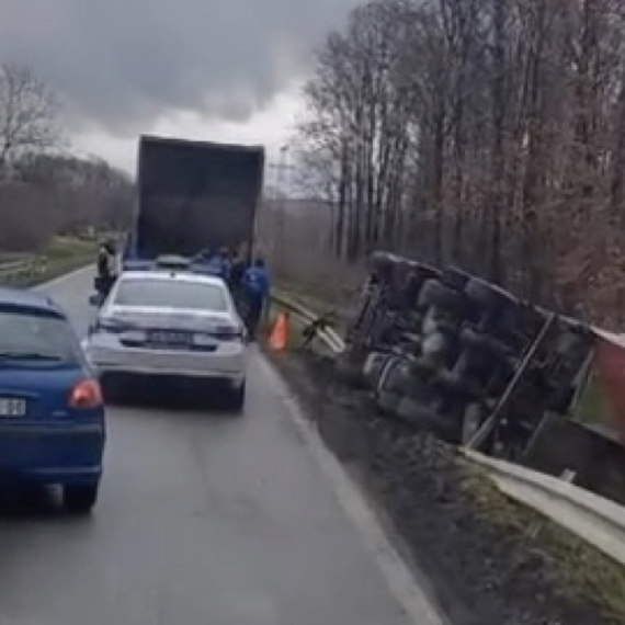 Na društvenim mrežama pojavio se neverovatan snimak koji prikazuje dramatičan trenutak kada je točak otpao sa teretnog kamiona dok se kretao magistralnim putem oko Kraljeva.