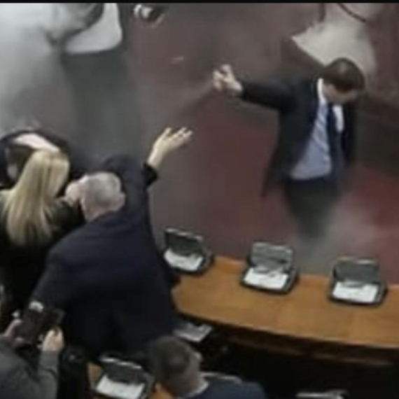 Lider Demokratske stranke Srbije Miloš Jovanović, po uzoru na Aljbina Kurtija, juče je pravio nerede u Skupštini Srbije i prskao poslanike vladajuće većine suzavcem