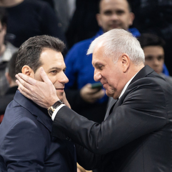 Dimitris Itudis i Željko Obradović sreli su se pred trening Partizana u Areni 8888 u Sofiji.