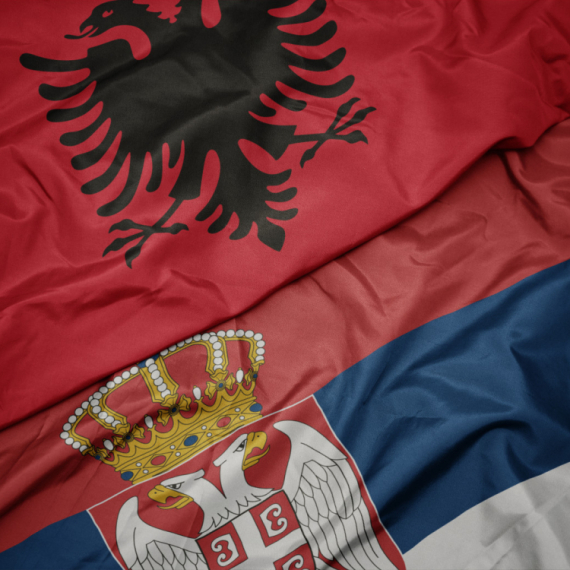 Šok prizor na bilbordu u Valjevu - crni, dvoglavi orao koji se nalazi na albanskoj zastavi, davi belog orla, obeležje srpske zastave.