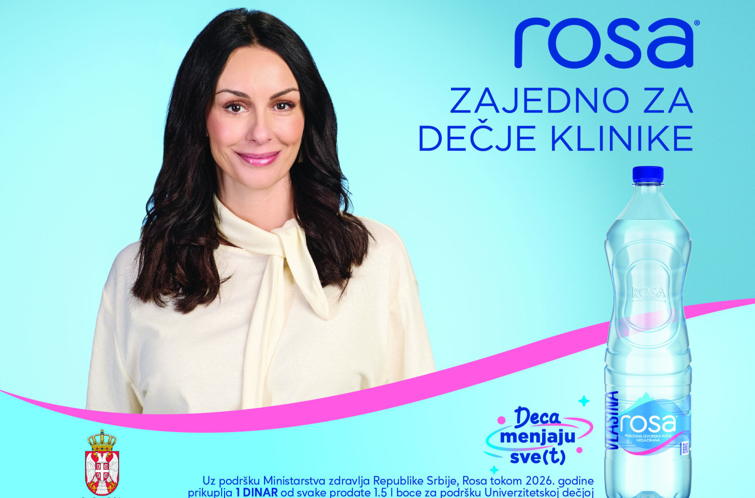 Kupovinom Rosa vode od 1,5 litara, potrošači direktno doprinose podršci Univerzitetskoj dečjoj klinici Tiršova i učestvuju u stvaranju boljih uslova za lečenje i brigu o najmlađima. Kampanju „Deca menjaju sve(t)“ podržala je, kao zaštitno lice inicijative, i glumica Sloboda Mićalović.