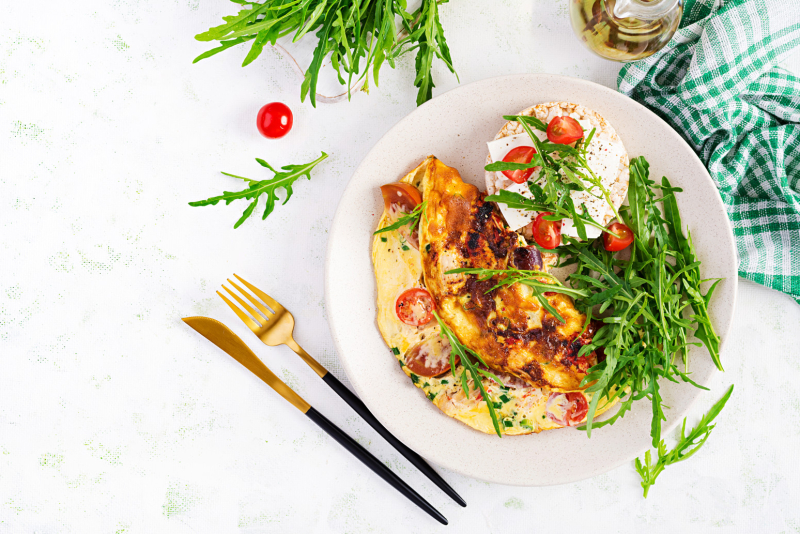 Jaja su mnogima omiljeni doručak, a mogu se pripremiti na različite načine, pa i kao omlet sa povrćem. Pripremite omlet pun proteina kombinovanjem jaja sa vašim omiljenim povrćem, kao što su spanać, paradajz i paprika.