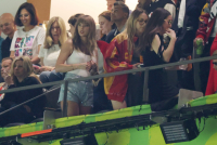 Sviftova je na veliku utakmicu dovela roditelje i brata, a za ovu priliku odabrala je ležerni outfit - belu majicu bez rukava i plave šorts sa šljokicama. Sve je upotpunila belim čizmama.
