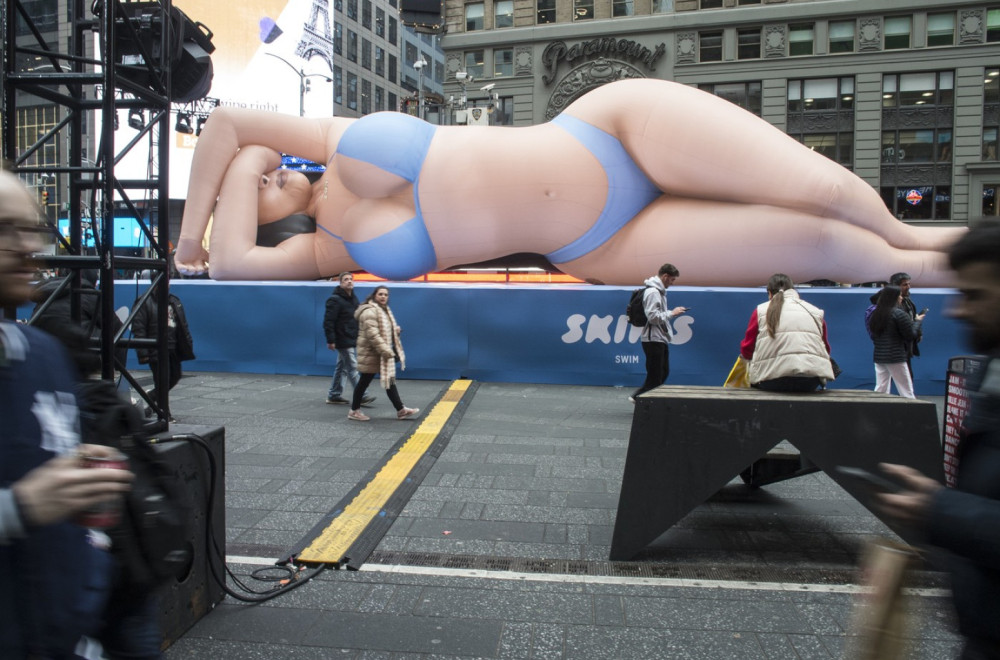 Na njujorškom Tajms skveru postavila je ogromnu lutku na naduvavanje u plavom bikiniju.