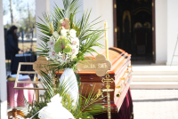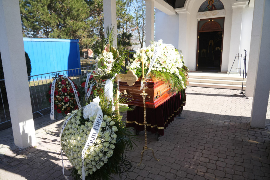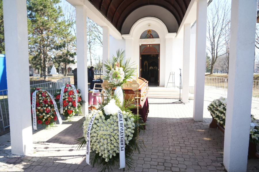 Kovčeg je bio postavljen ispred kapele. Pred kovčegom je postavljen venac od belih ruža u obliku srca od zaposlenih u Grand produkciji, a na kovčegu je položen venac od porodice sa emotivnom porukom: