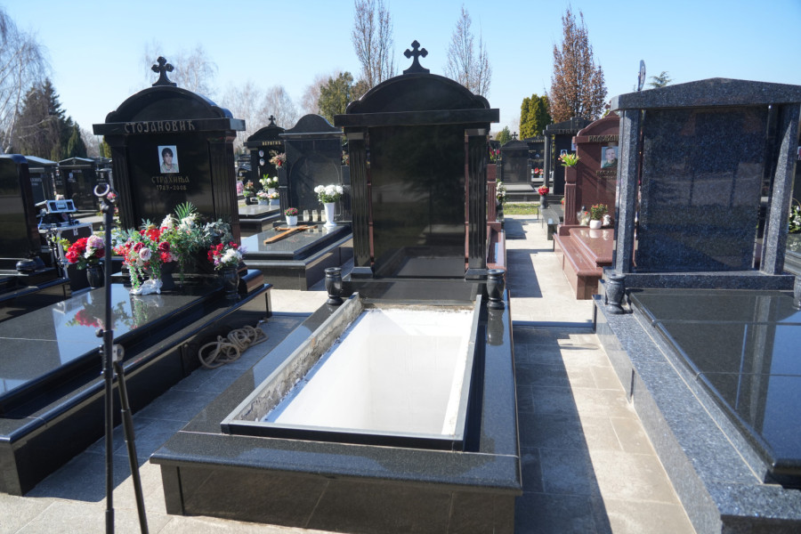 Suzana Jovanović je u suzama sa sinom Danijelom i ćerkom Aleksandrom stigla na groblje. Čim je stigla ona je počela da ljubi kovčeg i miluje sliku pokojnog supruga... Ona se potom sa porodicom uputila ka parohijskom domu, kako bi porazgovarala sa sveštenikom.