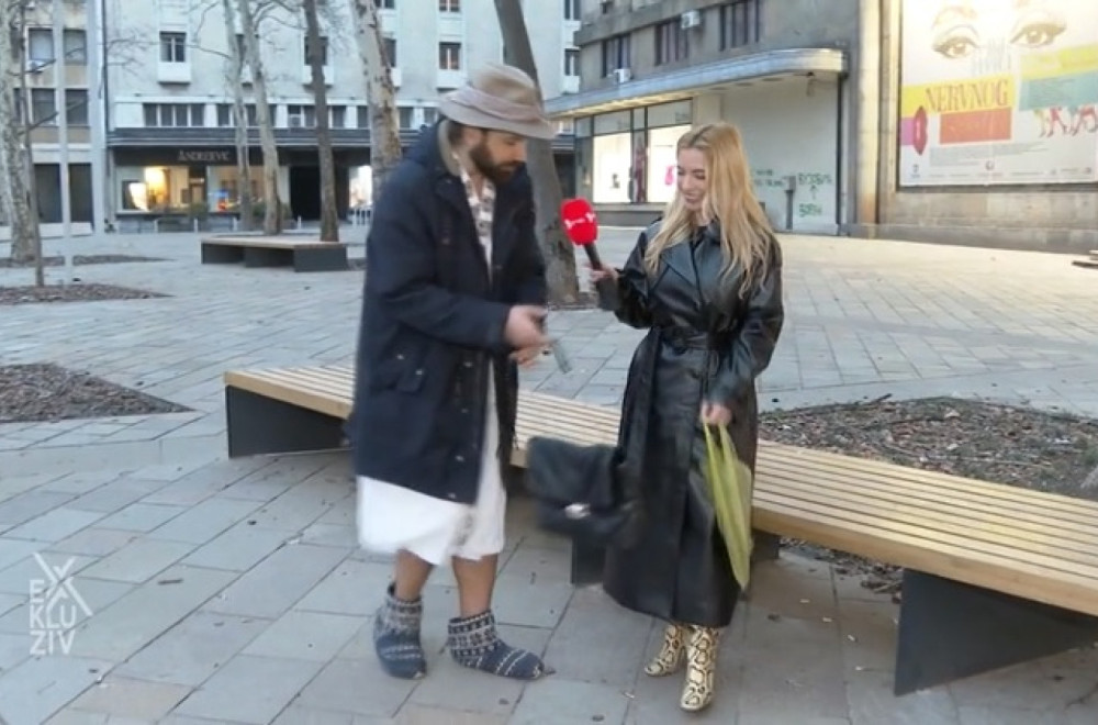 "Jedan čovek je pričao i pitao da li sam dobro. Ja ga gledam, kažem ja sam savršeno, još bolje kad odete", rekao je Kaličanin koji je bio na klupi upravo ispred službenog ulaza Pozorišta na Terazijama u kojem igra.