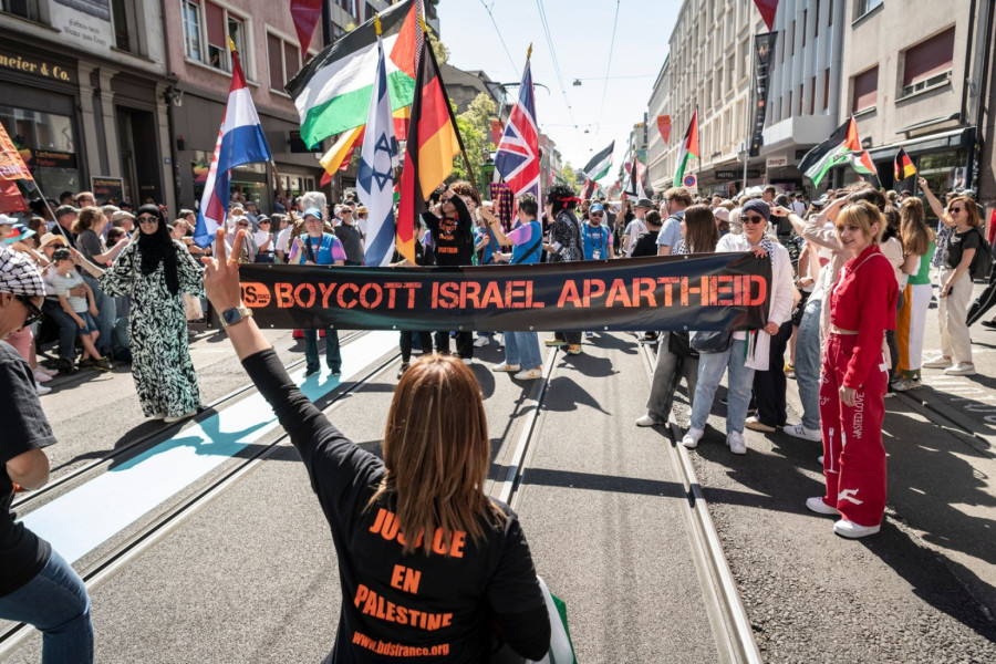 Izraelski javni servis Kan saopštio je danas da je podneo žalbu švajcarskim vlastima, tvrdeći da je jedan demonstrant napravio gest davljenja i pljunuo na članove izraelske delegacije tokom ceremonije otvaranja muzičkog takmičenja Pesma Evrovizije.