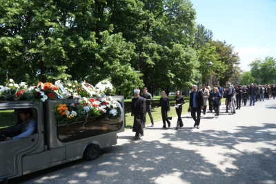 Supruga Lena i ćerka Una su neme od bola primale izjave saučešća okuplljenih, a među prvima su na groblje stigli glumci Svetozar Cvetković i Tihomir Stanić, koji je u rukama nosio belu ružu.