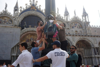 Građani Venecije održali su danas protest na Trgu Svetog Marka protiv venčanja milijardera Džefa Bezosa, zakazanog za subotu u tom gradu.