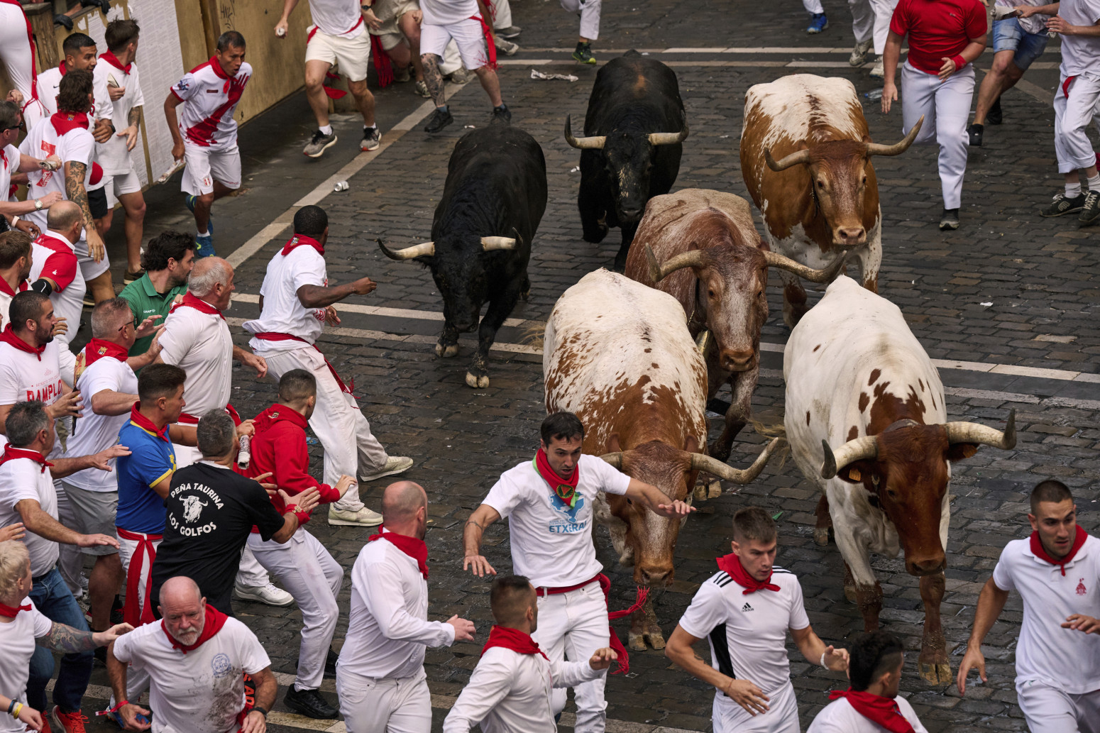 Brojne učesnike bikovi su pregazili, što su pokazali snimci uživo na televiziji. Dva bika oklliznula su se i pala na mokru kaldrmu.