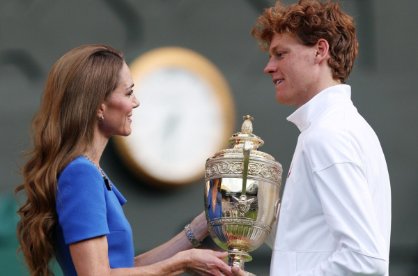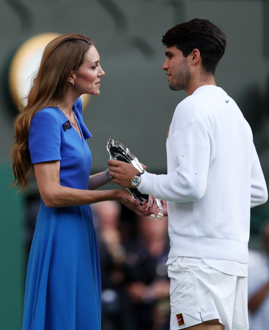 Princeza od Velsa, Kejt Midlton, koja tradicionalno ima čast da uručuje trofeje pobedniku i finalisti, uradila je upravo to – pehar je predala Janiku Sineru, dok je Karlosu Alkarazu pripala čuvena tacna koja se inače dodeljuje drugoplasiranom.