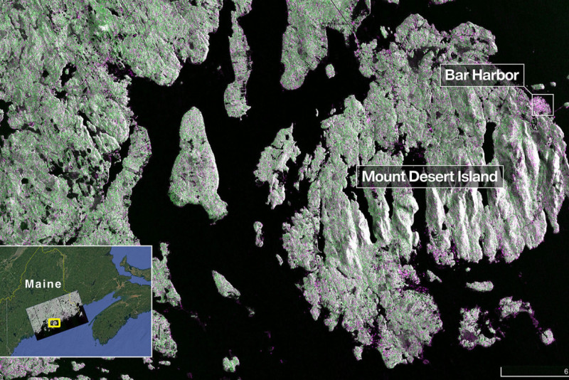 Satelitski L-band SAR sistem, koji je obezbedio Laboratoriju za mlazni pogon NASA, 21. avgusta snimio je ostrvo Maunt Desert na obali Mejne. Tamne oblasti predstavljaju vodu, dok zelene oblasti su šume, a magenta predstavlja tvrde ili pravilne površine, kao što su golo tlo i zgrade. L-band radarski sistem može da razluči objekte i od samo 5 metara, omogućavajući sliku da prikaže uske vodene tokove koji presecaju ostrvo, kao i ostrvca koja okružuju vode oko njega.
