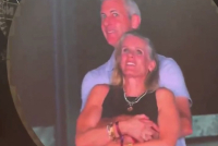 Video sa nastupa, koji je objavljen na internetu, prikazivao je Bajrona kako grli Kabot u intimnom zagrljaju, pre nego što su se povukli iz vidokruga kamere.