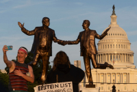 Bronzana statua predsednika Sjedinjenih Država Donalda Trampa i pokojnog osuđenog seksualnog prestupnika Džefrija Epstina ponovo se pojavila na Nacionalnoj aleiji u Vašingtonu, nakon što je prošle nedelje uklonjen sa tog mesta.