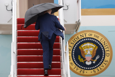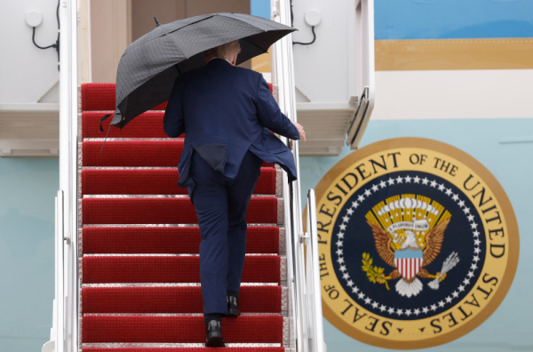 Nedavno, u aprilu ove godine, dok se spremao za poletanje za Mar-a-Lago, snimljen je kako pokušava da ubaci kišobran kroz uska vrata aviona, ali na kraju nije uspeo i predao ga je članu osoblja.
