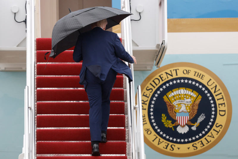 Otvrajaući kišobran, 79-godišnji Tramp je izašao iz automobila i krenuo ka avionu. Baš kada je trebalo da se ukrca, naišao je na problem - nije mogao da ga zatvori.