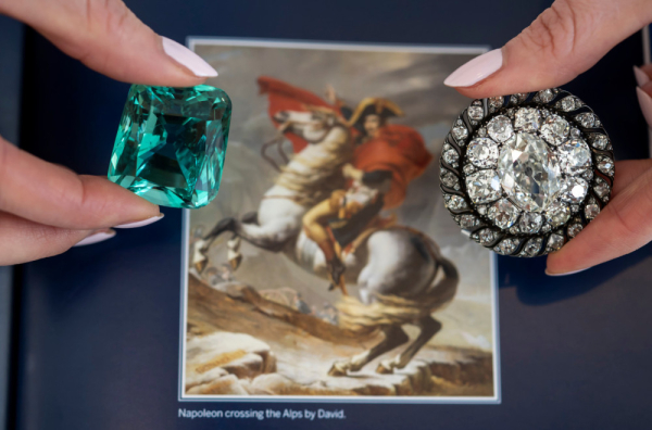 Dijamantski broš i veliki zeleni dragi kamen koji su pripadali Napoleonu prodati su u sredu na aukciji u Ženevi po mnogostruko višoj ceni nego što se očekivalo.