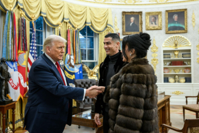 Uoči svečanosti u Beloj kući Ronaldo i Georgina imali su priliku da se druže sa predsednikom Amerike, a tom prilikom je fudbaler od Trampa dobio ključ Bele kuće.