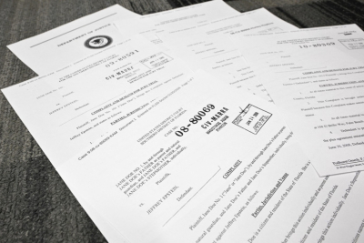 Prva fascikla izgleda sadrži fotografije snimljene tokom pretresa Epštajnove kuće na Menhetnu od strane FBI-ja. Jedna fotografija prikazuje ruke u crnim rukavicama koje drže papir sa adresom Epštajnovog bivšeg glavnog prebivališta.
