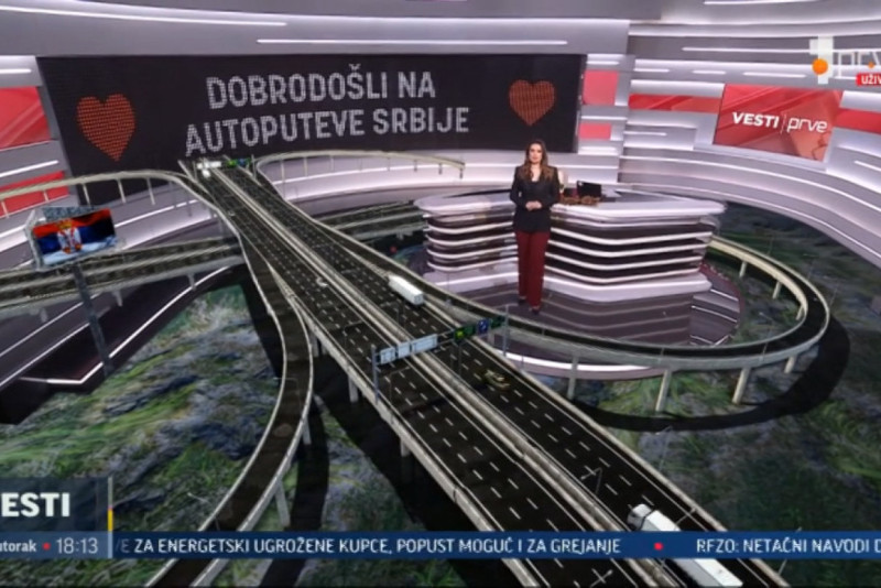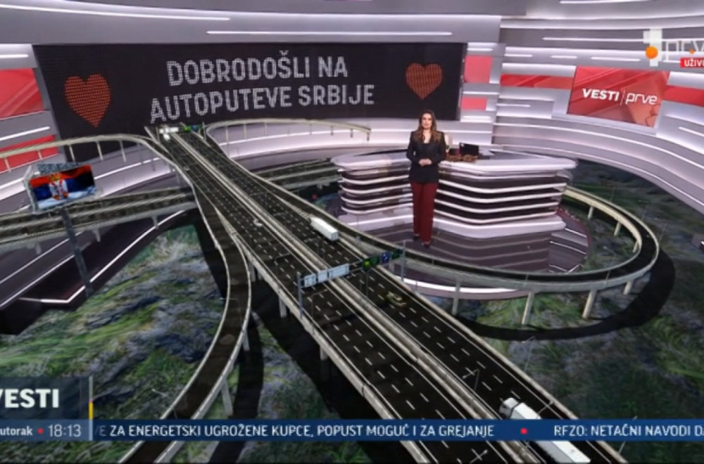 TV Prva još jednom pomera granice u domaćem informativnom programu – gledaoci putem najsavremenijih vizuelno-zvučnih prezentacija prate najnovije vesti, a ovoga puta o kliometrima izgrađenih autoputeva u Srbiji.