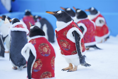 U severoistočnoj kineskoj provinciji Hejlongđang, u zabavnom parku "Harbin Polarland", održana je parada u kojoj su pingvini bili kostimirani u kineske nošnje.